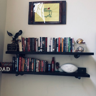 Happy Tuesday!!! A few weeks ago, I sold my bookcase that I purchased from Wayfair a few years ago and replaced it with these wooden shelves held by Industrial Pipes and Flanges. Super Easy project with a couple leftover boards, I had originally cut for a table. The rental house has been a work in progress since I started this overhaul in March but, it's finally coming together. All the work lately has it looking like I will meet my goal of replacing all furniture in my house with handmade by 2020.
